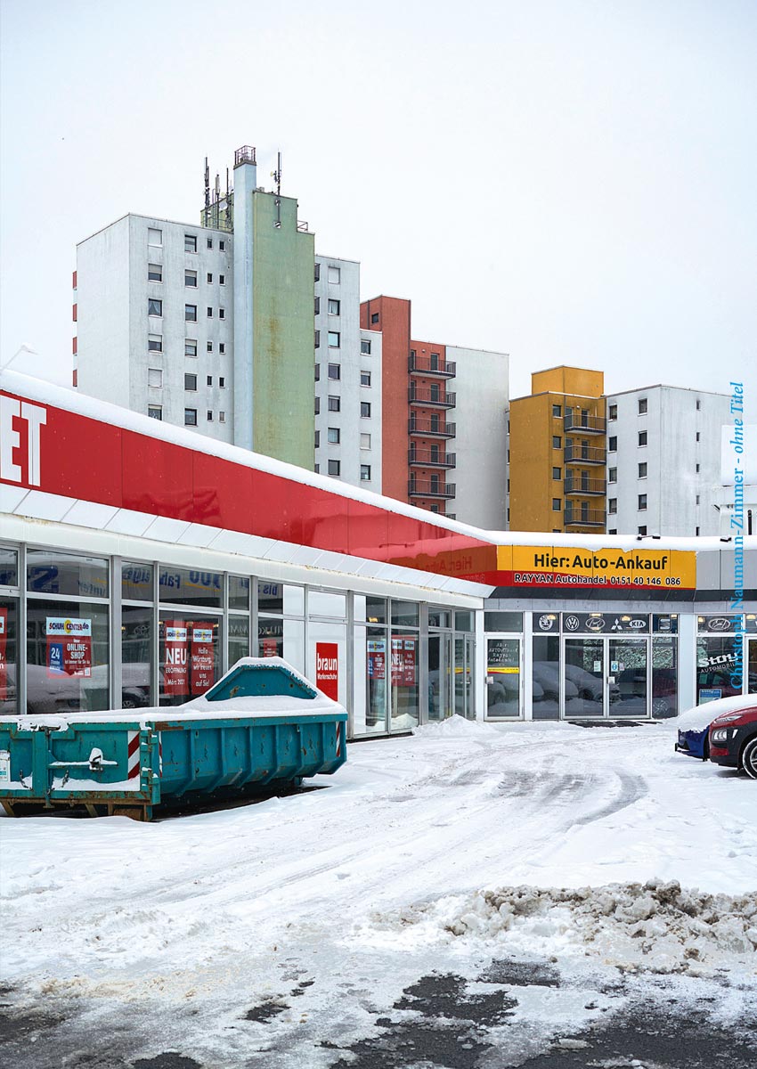 Was macht Stadt aus? Und wie lässt sich das in Würzburg fotografieren? Der Work in progress von Christoph Naumann-Zimmer macht den Galerieraum zum Labor des Denkens, Schauens und gestaltenden Handelns zum Thema Stadt. Hier ist die Basis und zugleich der Ausgangsort für weitere Streifzüge, von denen er mit neuen Bildern zurückkommt. Die Hängung an den Wänden gerät in andauernden Aufruhr, wird komplettiert, wieder abgeräumt und neu angeordnet. Mehrere Gast-Kura-tor:innen dekorieren um. Ein wechselhaftes wie sinnstiftendes Neben- und Miteinander der fotografischen Beobachtungen entsteht.