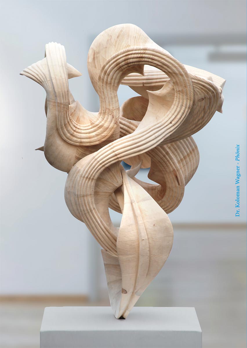 Für viele globale Herausforderungen unserer Zeit bieten Wissenschaft und Technik Erfolg versprechende Lösungsansätze an. Oft stehen dabei die von Theorien und zweckrationalem Denken geleiteten Konzepte und Handlungsempfehlungen im Wiederspruch zu unseren persönlichen Erfahrungen. Der Künstler Koloman Wagner verbindet in seinen Arbeiten organisch fließende Formen mit mathematischen Ansätzen und versucht die Kluft zwischen dem, was wir denken und fühlen zu überbrücken. In zahlreichen Skulpturen und Zeichnungen aber auch in Malerei und Video wird der Galeriebesuchter exemplarisch in die Formenwelt der vierdimensionalen Raumzeit eingeführt und, davon ausgehend, assoziativ mit Fragen nach Selbstbestimmtheit, Determinismus und Identität konfrontiert.