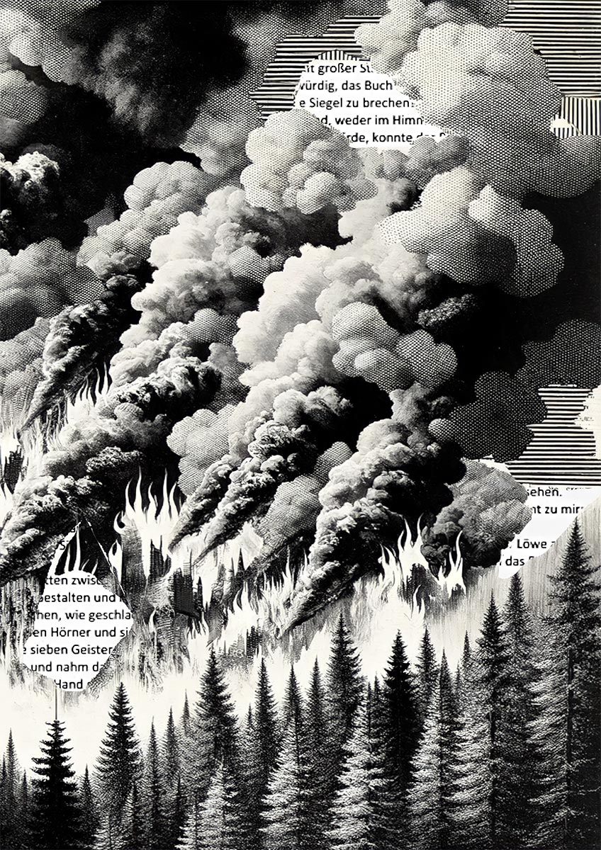 Ihre aktuellen Mixed-Media Arbeiten unter dem Titel „Endzeit“ thematisieren die Konsequenzen menschlichen Handelns auf Gesellschaft und Umwelt.
