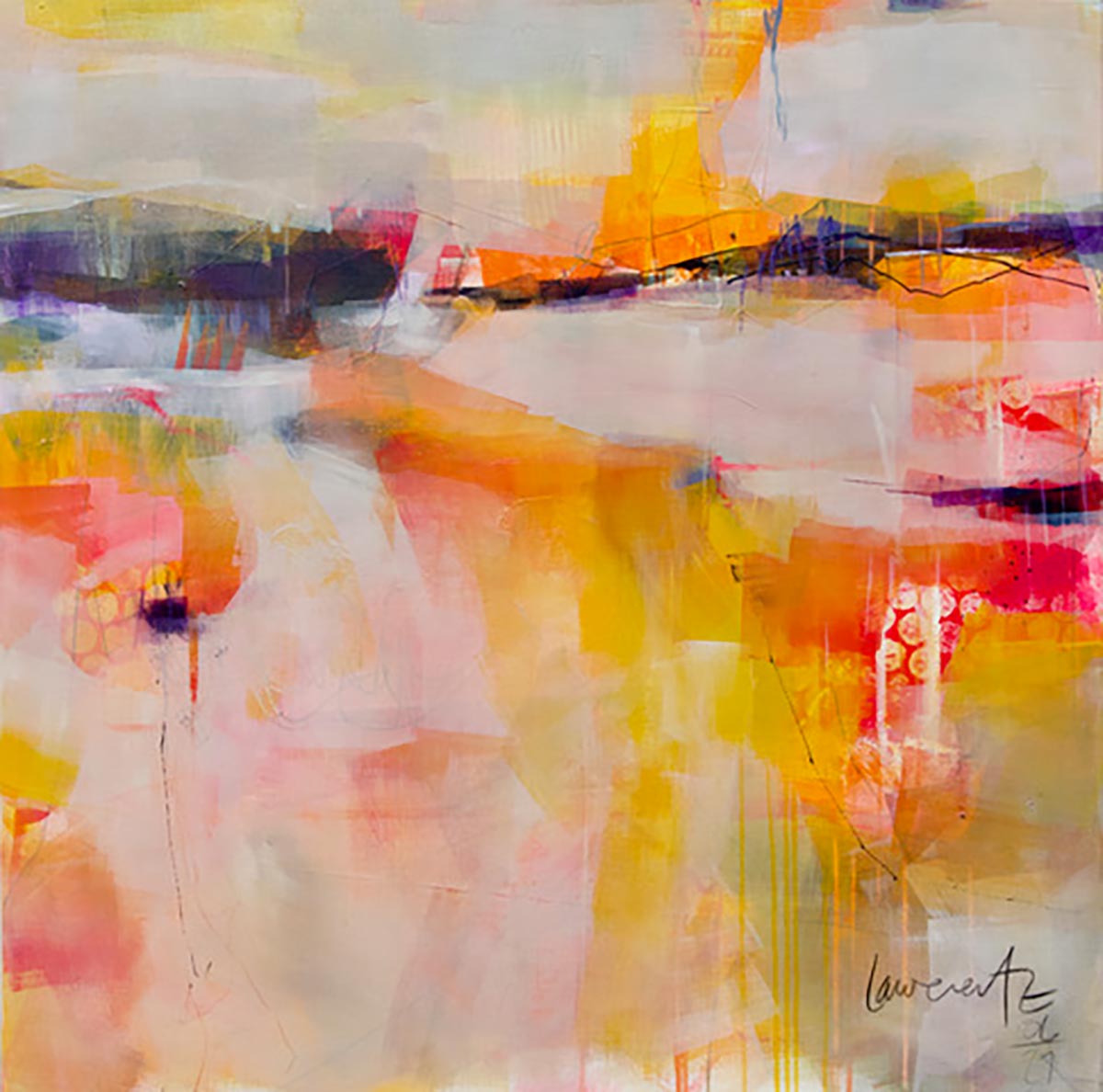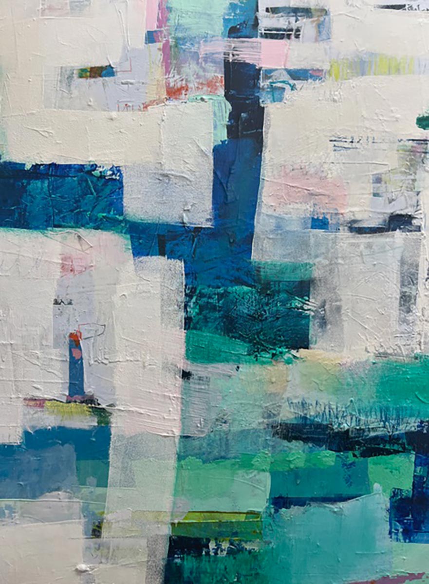 Suzannes abstrakte Gemälde entstehen durch die Verwendung vieler Farbschichten, die einen Reichtum an Farben, Tiefe und Textur erzeugen. Der Prozess beinhaltet dann eine überlegte Entscheidungsfindung, um eine harmonische Spannung zu erzeugen. Elemente wie Farbe und Form können reduziert werden, manchmal radikal aber oft auf eine Weise, die es diesen Elementen erlaubt, im fertigen Werk ruhig präsent zu sein.