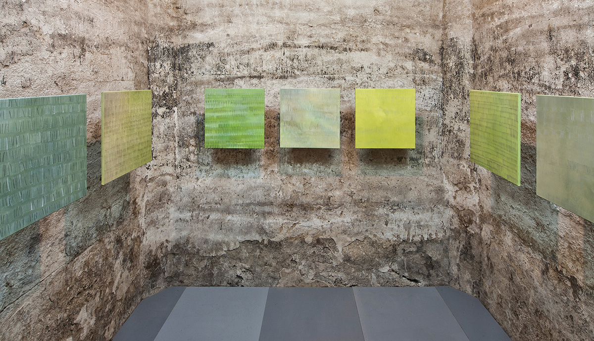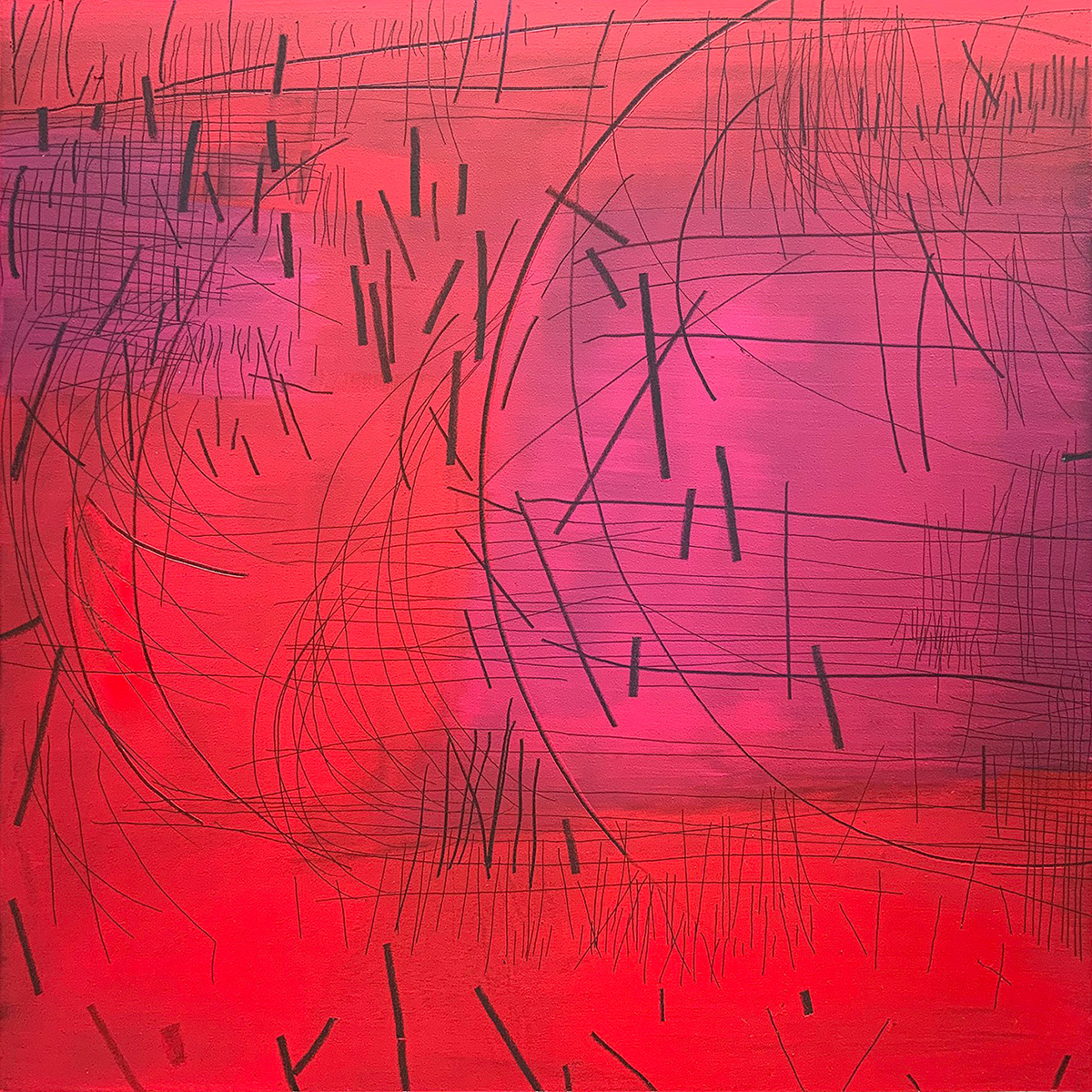 Jusha Mueller (*1958 in Bad Kissingen) führte ihr künstlerischer Weg über Farbfeldmalerei zur Monochromie und in die Nähe der Konkreten Kunst sowie zu einer intuitiv-reaktiven Malerei. Formal reduzierte Werkgruppen stehen so neben einer Art seismografischer, tachistischer Malerei, mit der sie u.a. bei ausgedehnten Kunstreisen auf Klänge und Umgebungsgeräusche reagiert.